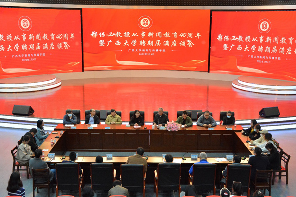 1月4日,鄭保衛教授從事新聞教育40周年暨廣西大學聘期屆滿座談會在廣西大學舉行。