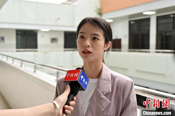圖為廣西大學外國語學院2018級越南語專業學生覃媚接受中新網采訪。 俞靖 攝