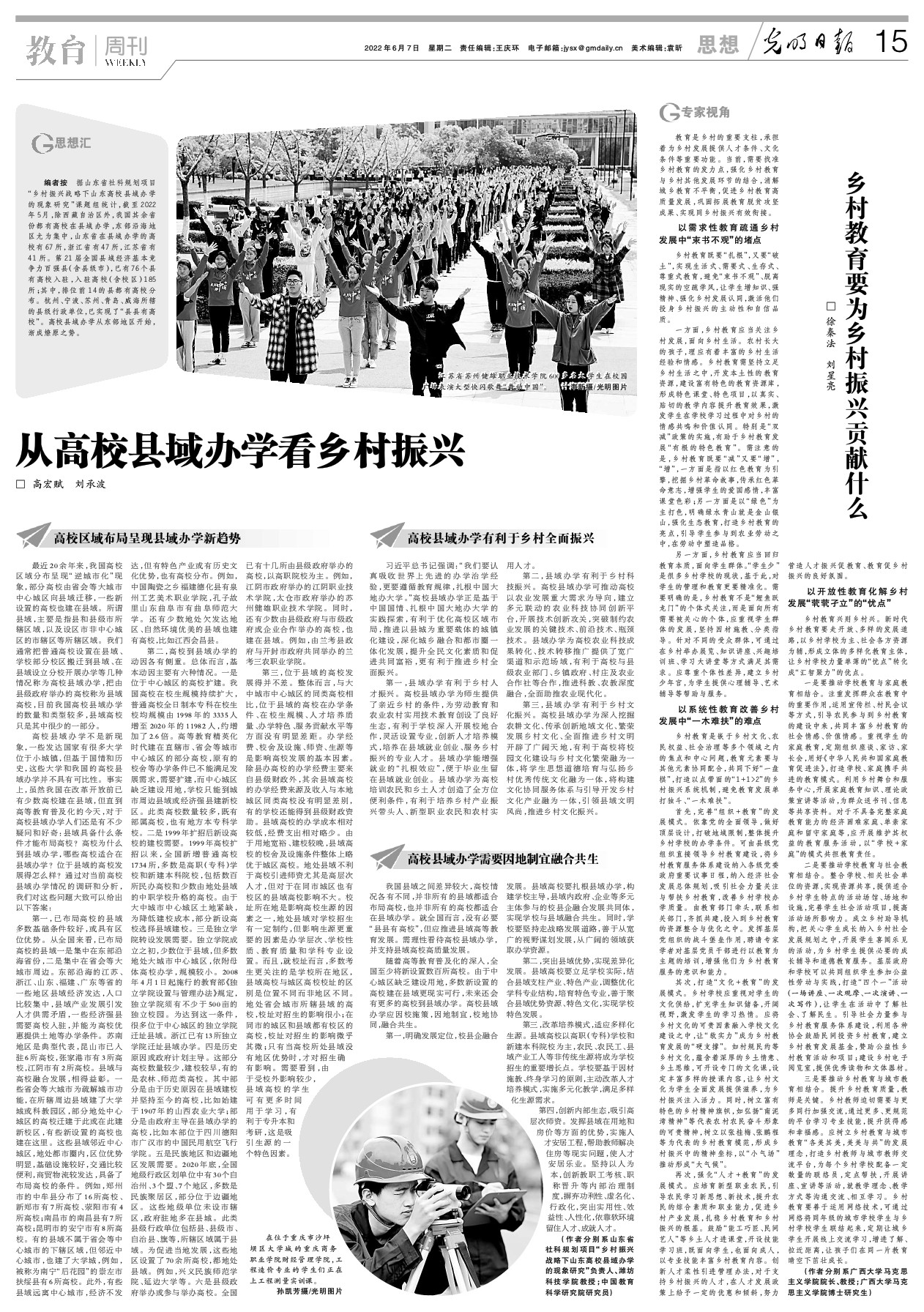 ??鄉村教育既要“扎根”,又要“破土”,實現生活式、需要式、生存式、尊重式教育,避免“束書不觀”、脫離現實的空疏學風,讓學生增知識、強精神、強化鄉村發展認同,激活他們投身鄉村振興的主動性和自信品質。