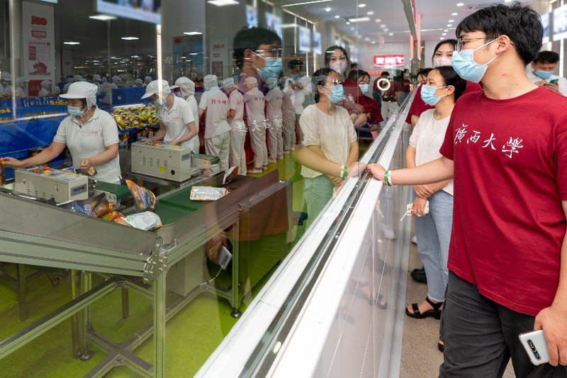 活動期間,實踐隊走進螺螄粉文化展覽館,詳細了解螺螄粉的文化和歷史,感受螺螄粉企業的企業理念和企業精神;參觀螺螄粉生產車間、食品包裝流水線以及螺螄粉營銷直播間,全面了解螺螄粉的加工、營銷全過程。