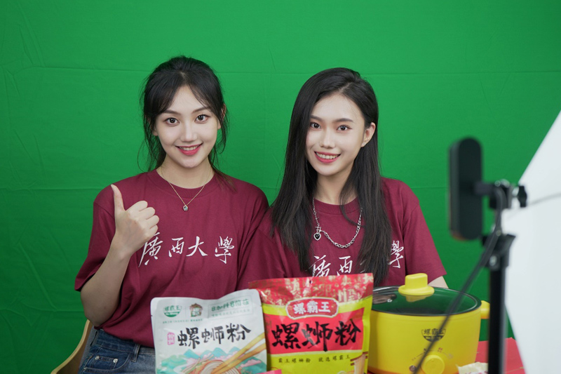 大學生們還與企業直播團隊合作拍攝了螺螄粉直播抖音視頻,將自己所學運用到實踐活動之中。“這次柳州之行真是不虛此行!我體驗了現場直播帶貨,感到非常新奇。如何更好地宣傳產品,我們需要進一步學習研究。”播音與主持藝術專業大學生黃悅華說。