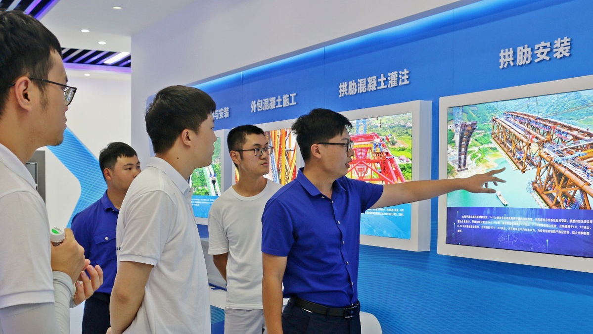 如何解決技術層面上的難題?“需要摸著石頭過河,在實踐中摸索”是整個團隊在施工過程中得出的體悟。項目經理部黨支部書記岳海江表示,很多技術是以前沒有嘗試過的,團隊需要在以往的基礎上因地制宜地進行升級改造,以適應整個施工過程。在鄭皆連院士的帶領下,專家團隊以解決實際問題為出發點,經過多年創新攻關,成功原創斜拉索調載分環分段多工作面澆注外包混凝土技術等系列先進技術,大大降低了工程造價和施工安全風險。同時,項目團隊建立了1:1的足尺模型進行實驗,提前模擬外包混凝土的現場施工情況,從而保障外包混凝土方案的合理性、安全性。