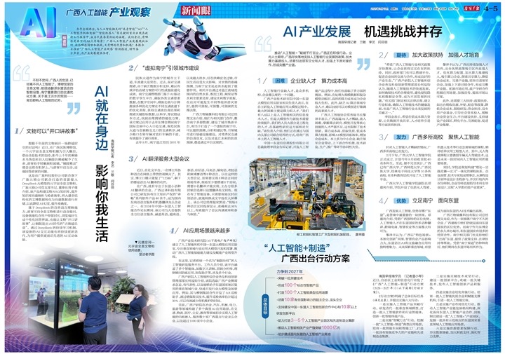 推動“人工智能+”賦能千行百業,廣西正在積極行動。業內人士期待,廣西盡快落地支持人工智能行業發展的政策,加大算力基建投入,培育引進領軍企業和人才,加強上下游對接合作,形成完整產業鏈。