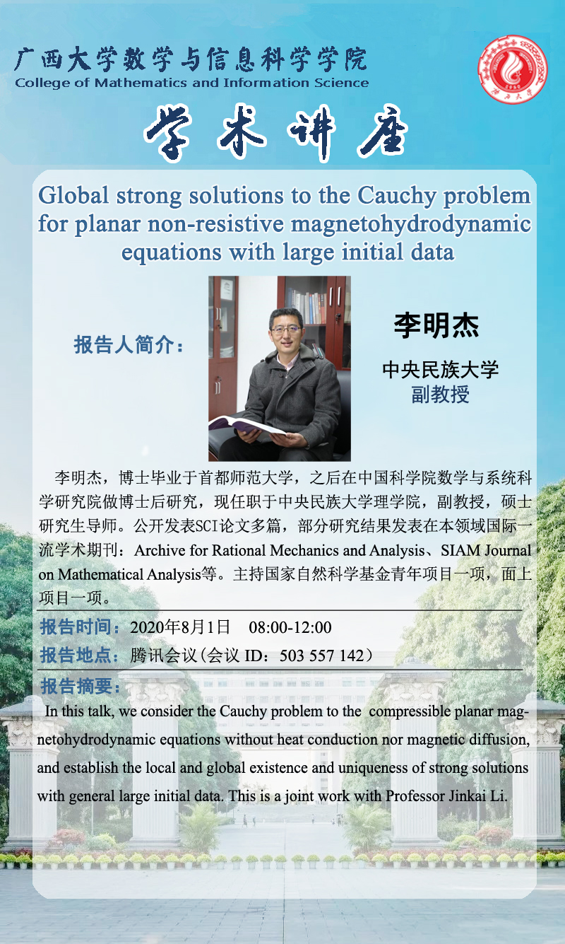 下一條:數信學院學術報告:The Vlasov-Maxwell-Boltzmann system near Maxwellians with