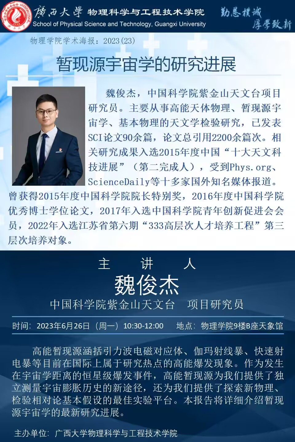 下一條:物理學院2023年學術報告系列之22:X射線脈沖星的吸積與輻射過程—以1A 0535+262為例