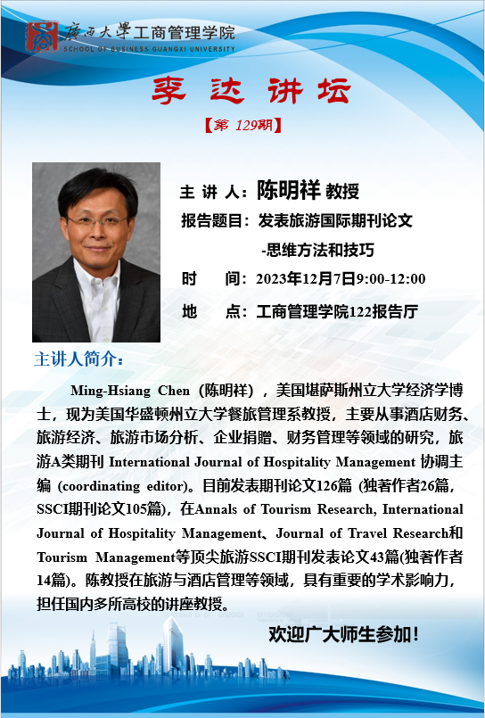 下一條:李達講壇 第130期 :發表旅游國際期刊論文 如何選題與文章開頭寫作