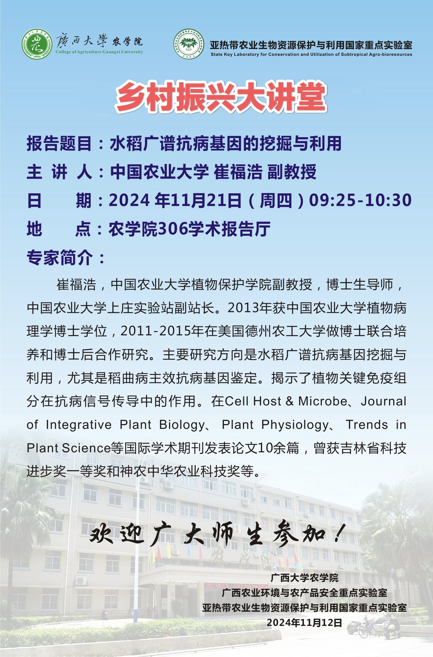 上一條:君武大講壇:青枯菌的致病機制與維管束適應性