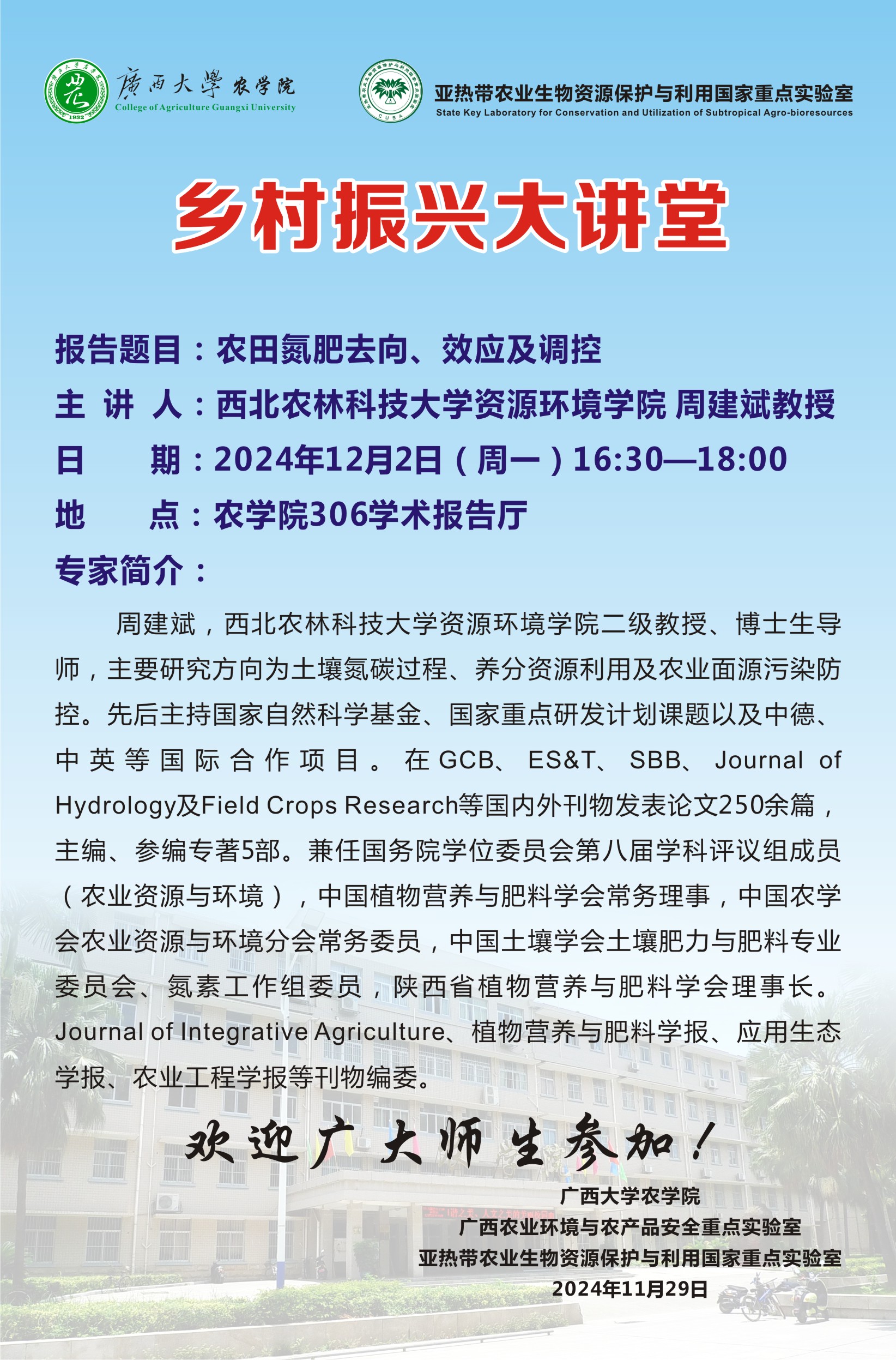 桂ICP備05000940-1號 版權所有 ? 廣西大學 廣西南寧市大學東路100號 郵編:530004 Email:webmaster@gxu.edu.cn桂公網安備 45010702000001號