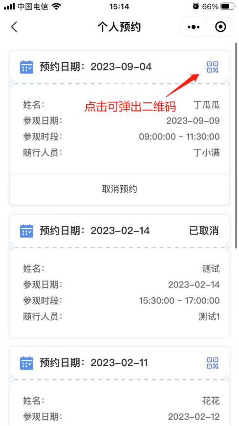 8. 個人中心-個人門票預約中可查看個人預約記錄。