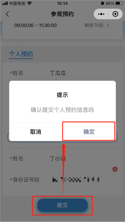 6. 填寫預約人和隨行人員信息,每場參觀預約上限位70人,超過人數無法預約,只能約下一場次。